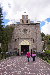 Para terminar a nossa passagem pela cidade, escolhemos visitar a Basílica da Nossa Senhora de Guadalupe. Este santuário católico recebe muitos visitantes durante todo o ano e, no dia em que lá fomos, estava cheio de vários grupos que certamente viriam de diferentes lugares do país. O Santuário é bastante maior do que imaginávamos.