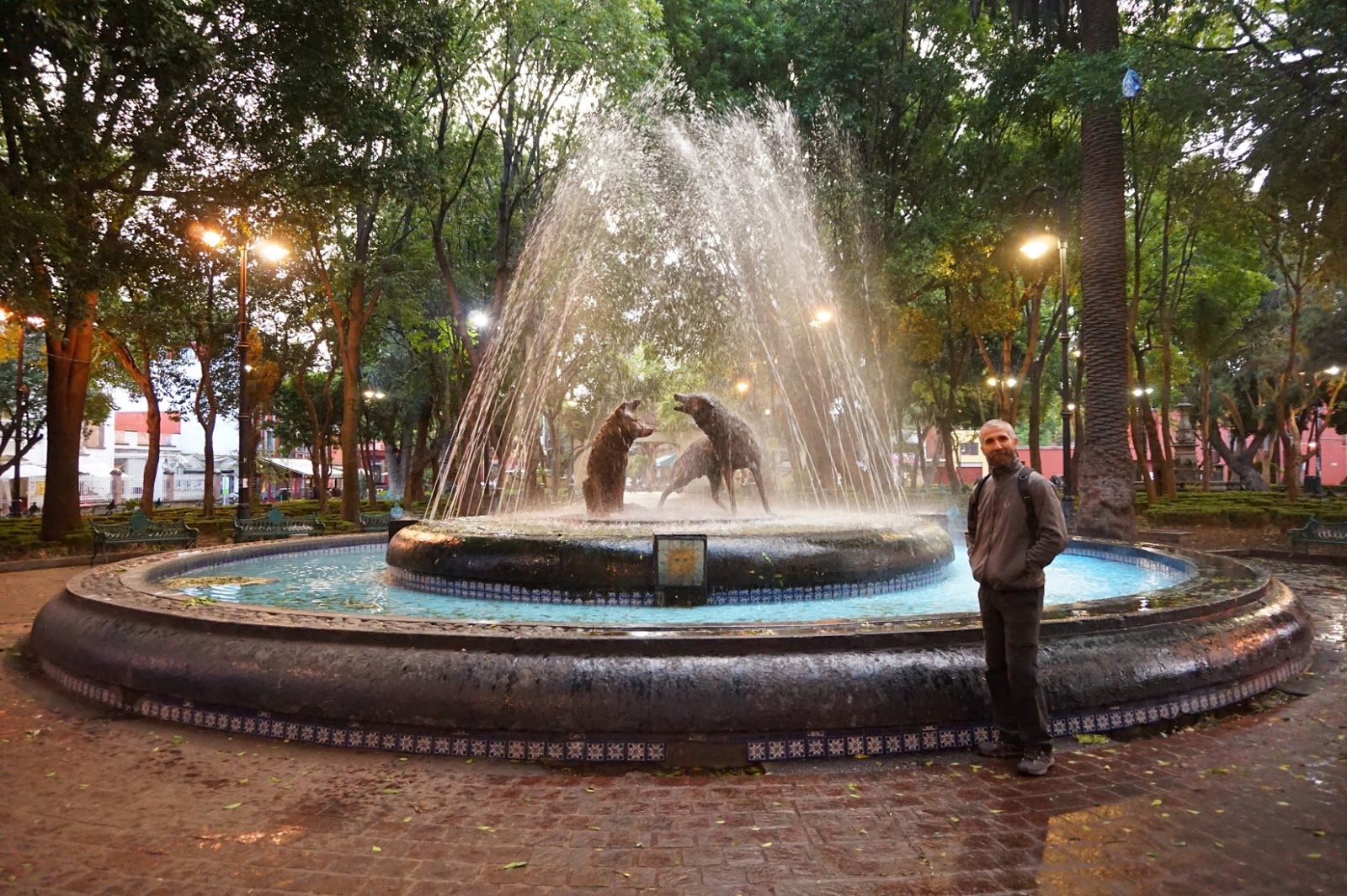 Coyoacan tem uma atmosfera pitoresca e intelectual. Por entre as suas casas coloridas e pequenas, desenham-se as ruas estreitas e geométricas. No dia em que lá estivemos chovia bastante e, por isso, soube-nos bem aceitar o convite da Ana e da Pau para apanhar o autocarro turístico e ficar a conhecer um pouco mais sobre a história do bairro.