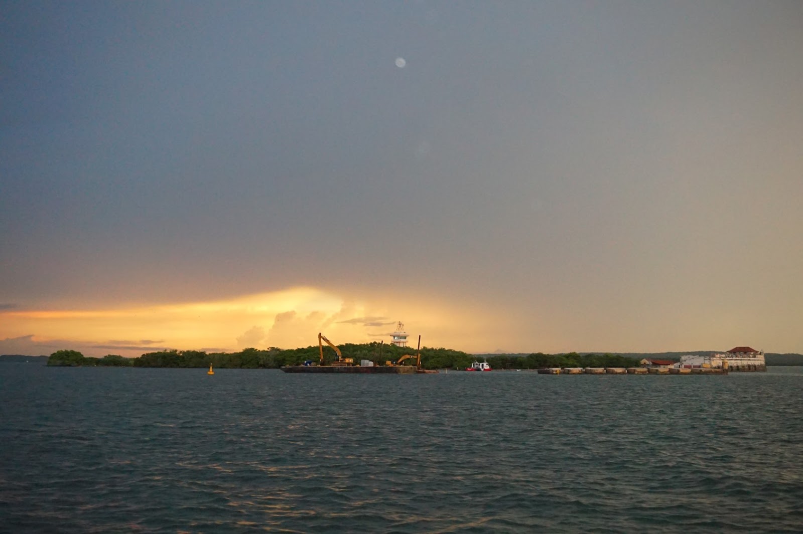 Entramos finalmente na baía de Cartagena. Ancoramos uma