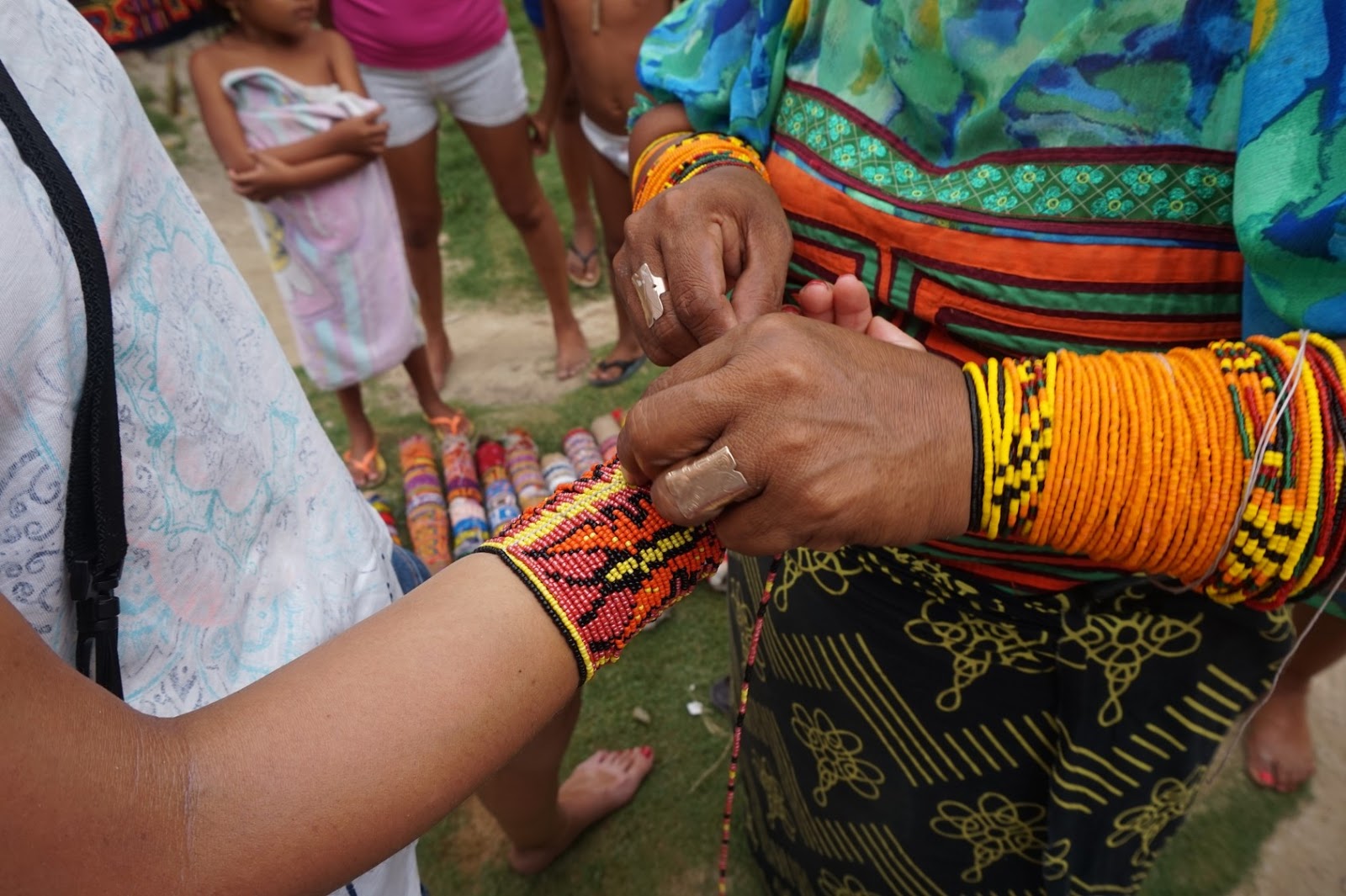coloca a pulseira… Todas as mulheres de povos indígenas que vi até agora luziam